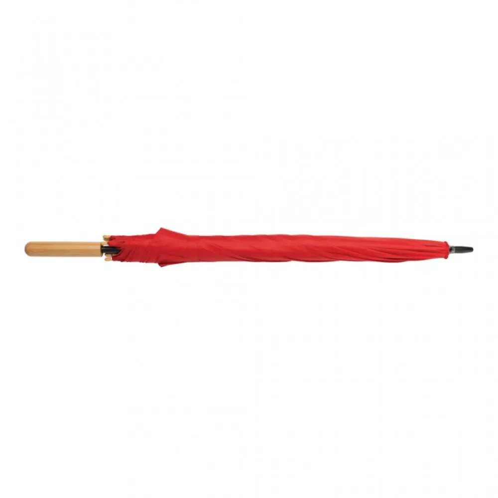 Metal frame, fibreglass ribs and stylish bamboo handle.