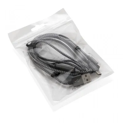 Braided nylon material cable with connectors made out of durable aluminium. Suitable for charging. Length 120cm.
