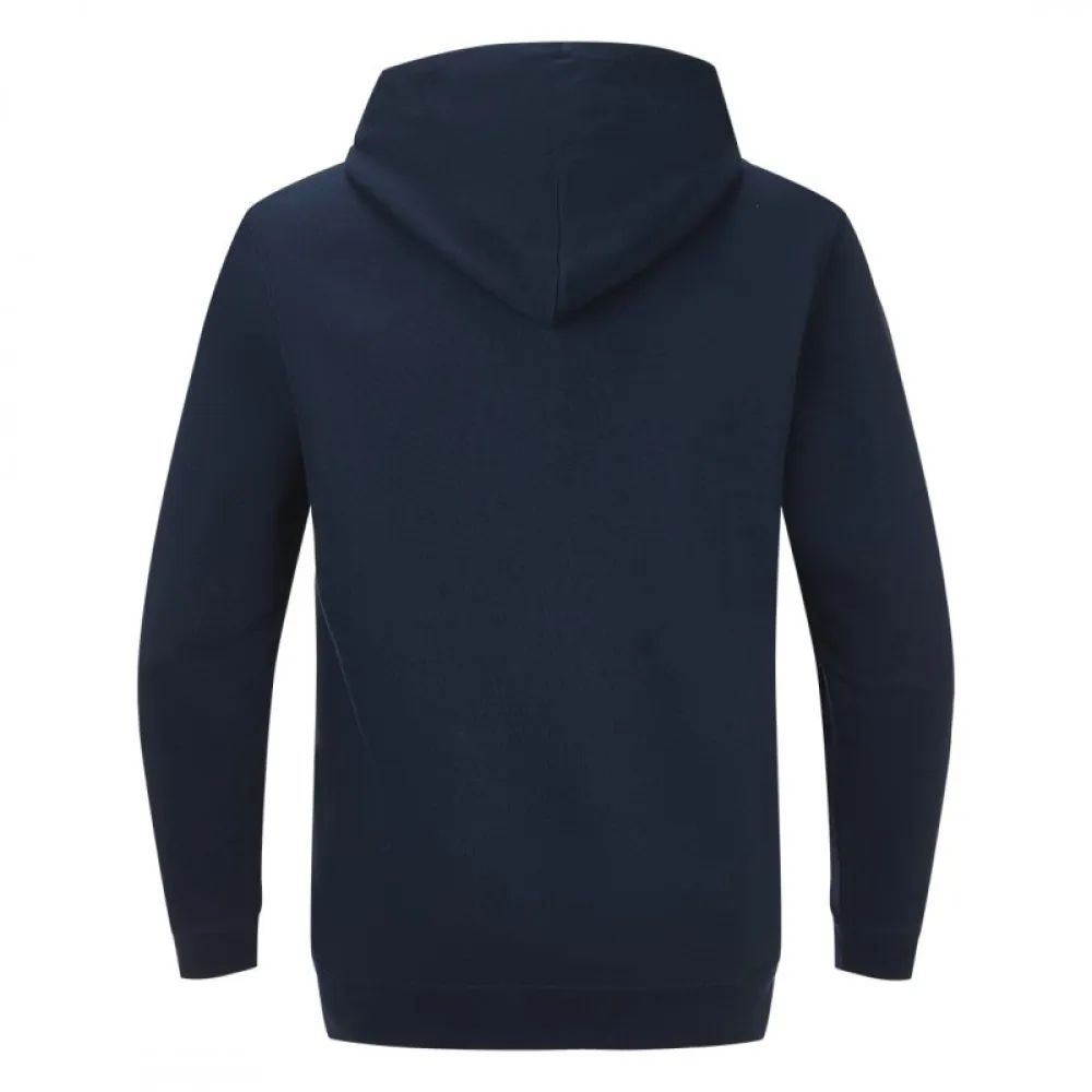 Dukserica od organskog pamuka, prednji džep, učkur u kapuljači u boji dukserice, elastične ranfle na rukavima i dnu, dodatni štepovi na ramenima, rukavima i dnu, okovratnik ojačan trakom