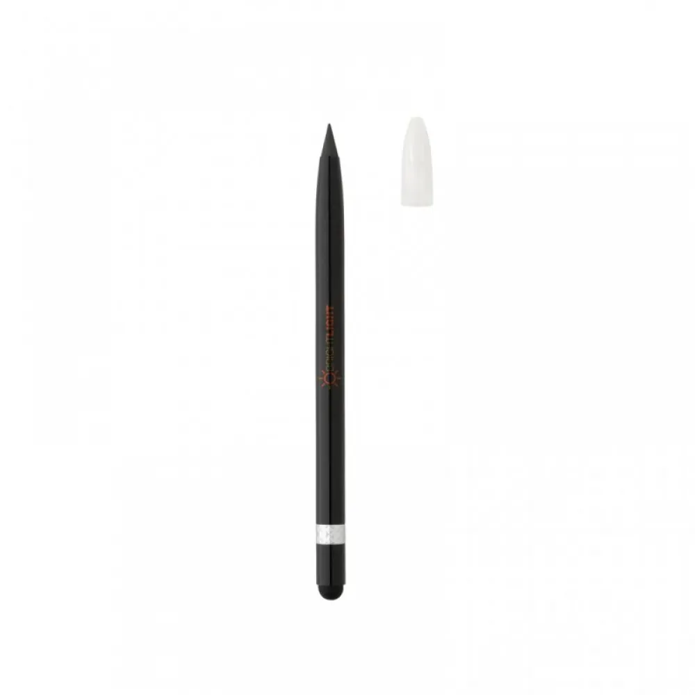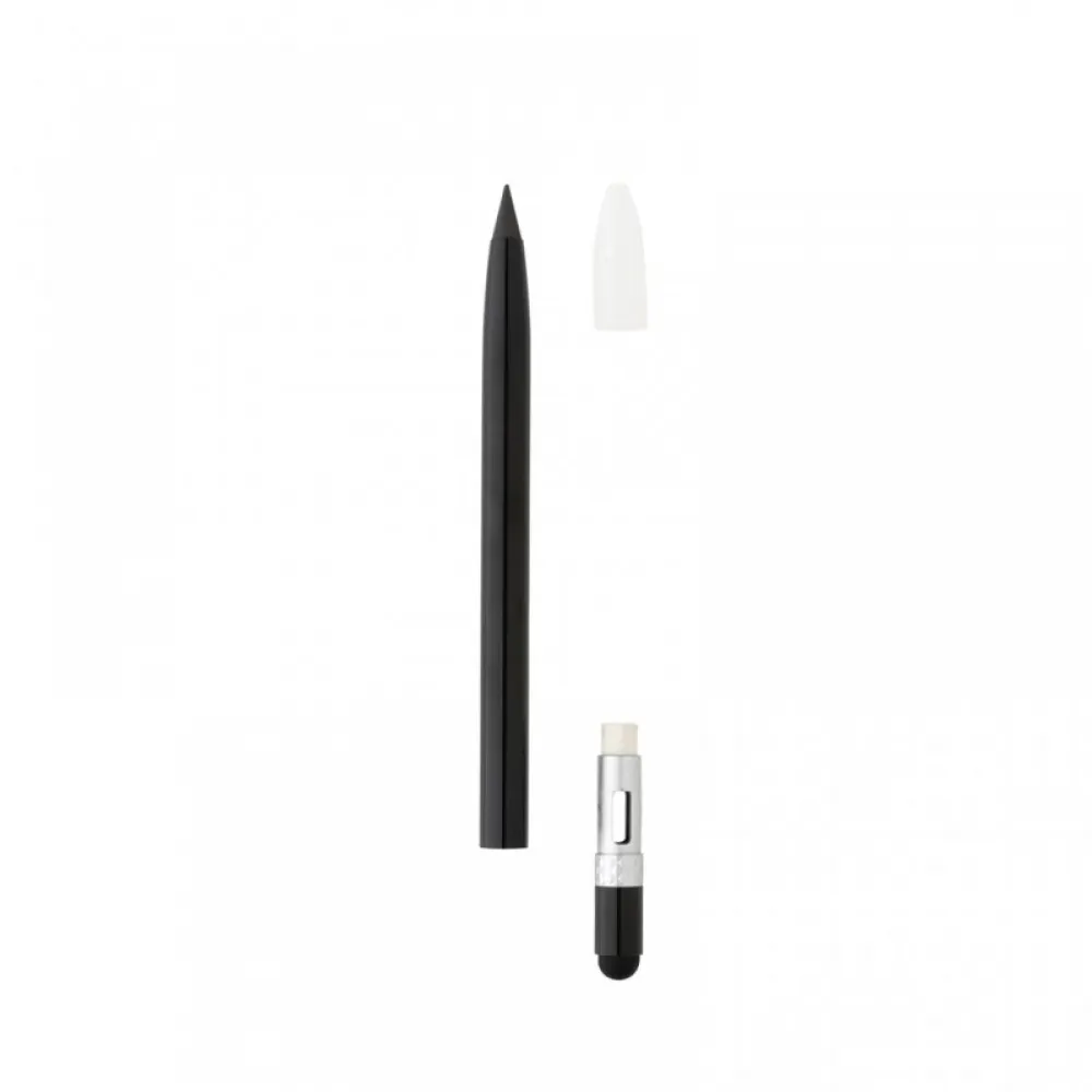 This inkless pen with eraser replaces your traditional wooden pencil. It has a writing length of up to 20.000 metres using a graphite tip to produce a graphite line. It features a clean and modern look with the aluminum and on the top you will find an eraser.