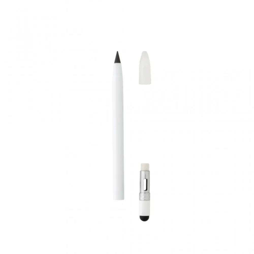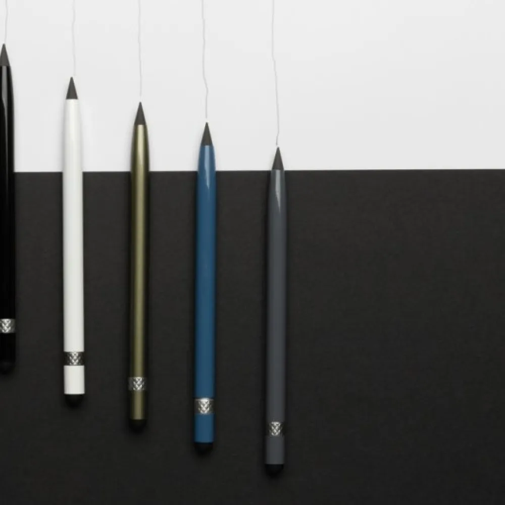 This inkless pen with eraser replaces your traditional wooden pencil. It has a writing length of up to 20.000 metres using a graphite tip to produce a graphite line. It features a clean and modern look with the aluminum and on the top you will find an eraser.