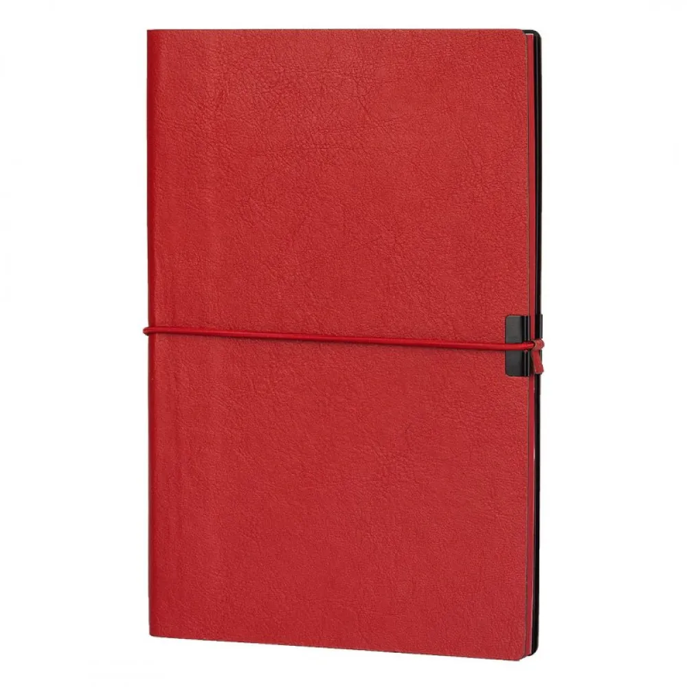 Notes sa fleksibilnom koricom, zaobljenim ivicama, bojenom ivicom knjižnog bloka u boji korice, crnim predlistom i elastičnom gumicom sa dodatkom za povlačenje