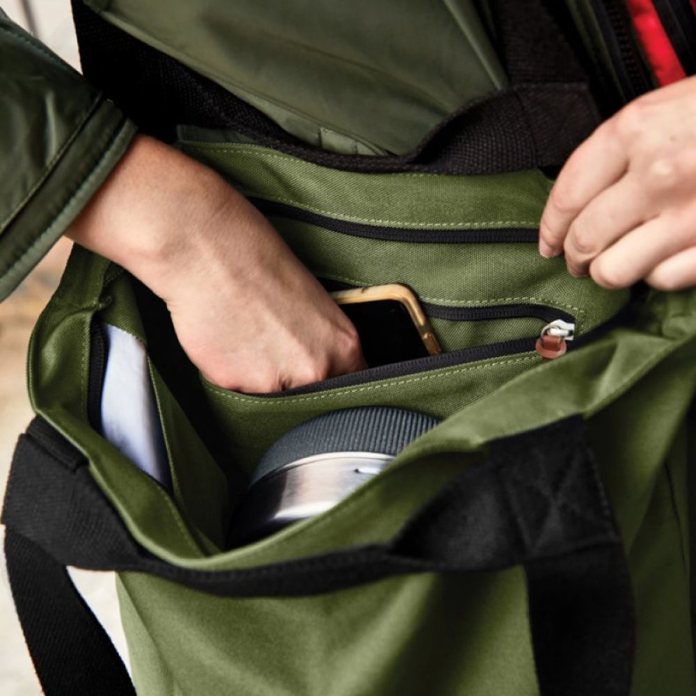 The interior includes a split compartment to separate cool or damp contents, and there’s an inner pocket for easy access to your essentials. A water-resistant reinforced base ensures durability on any surface, while the water-repellent insulated lining is easy to wipe clean. It even fits laptops up to 40 cm.