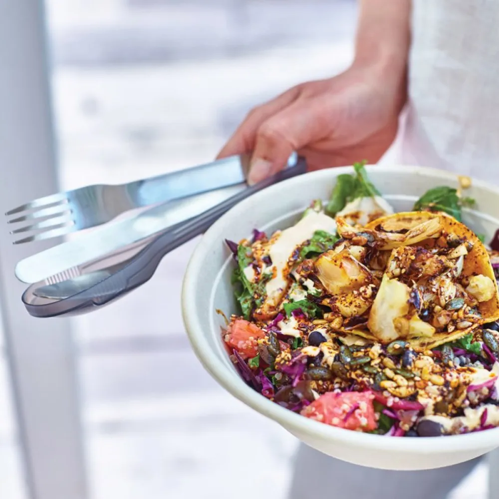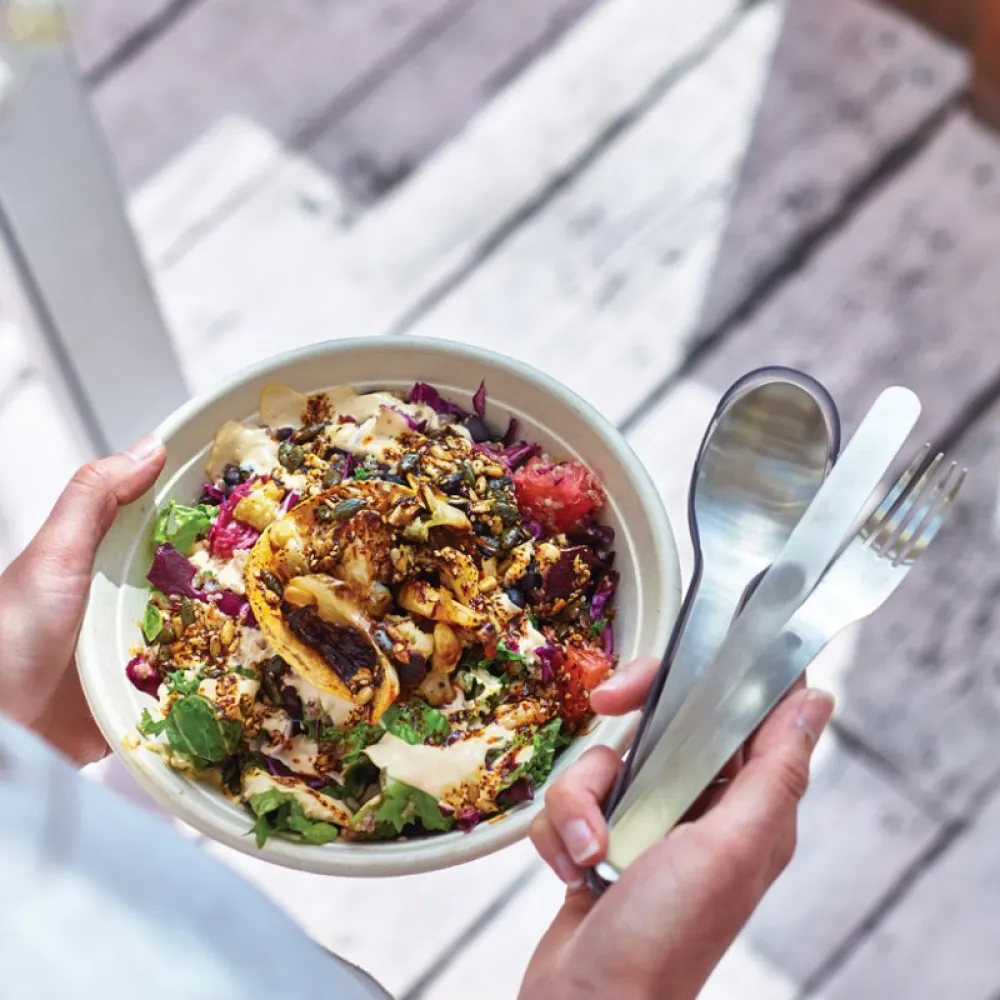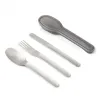 A compact stainless steel knife, fork, spoon set that is nice to use and nests into the case for easy carrying. No more flimsy 'not fit for purpose' plastic forks or badly washed canteen cutlery.