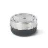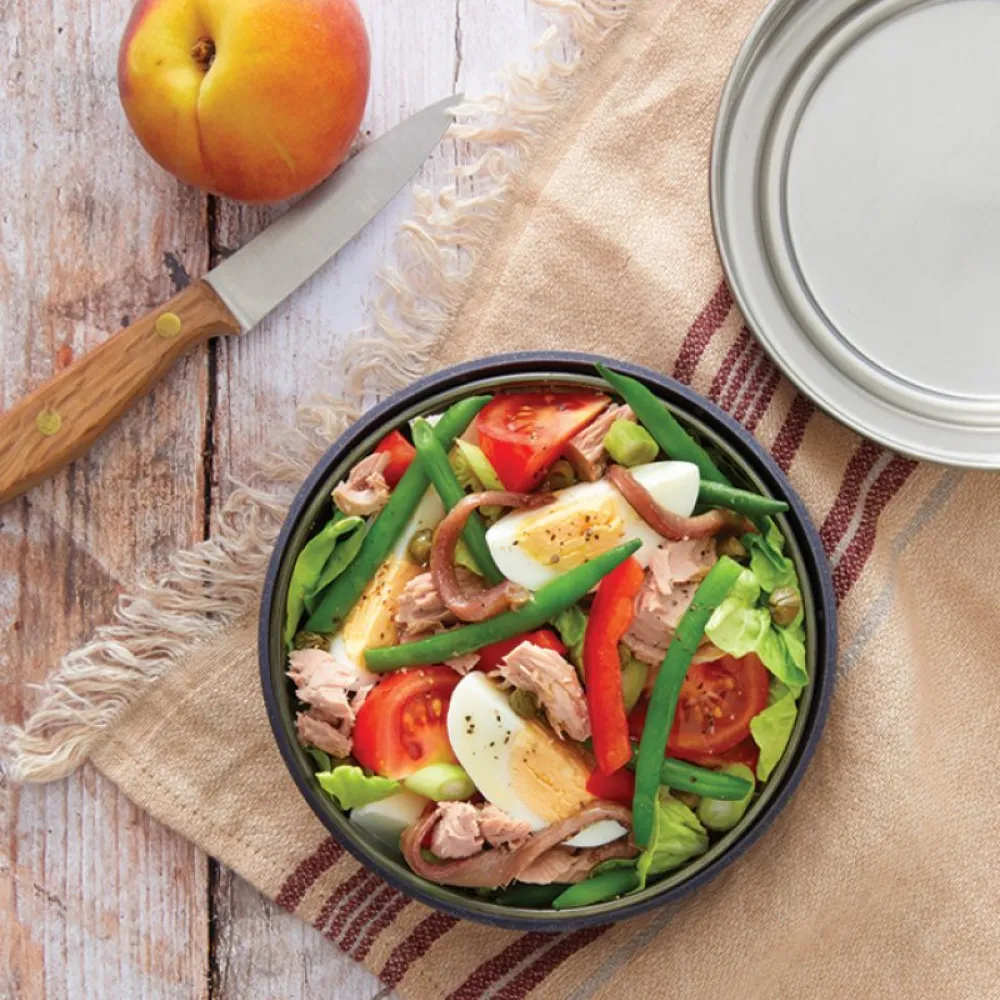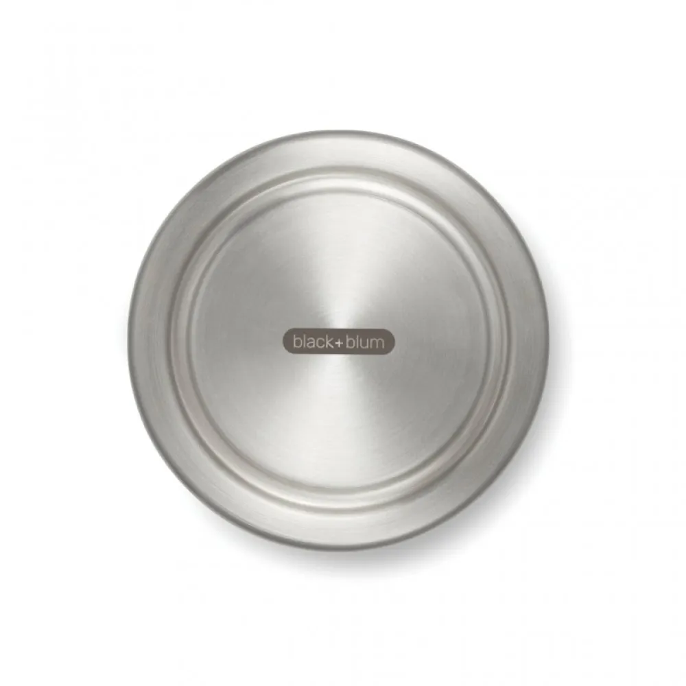 The stainless-steel lid screws onto the base to provide a leak-proof seal.