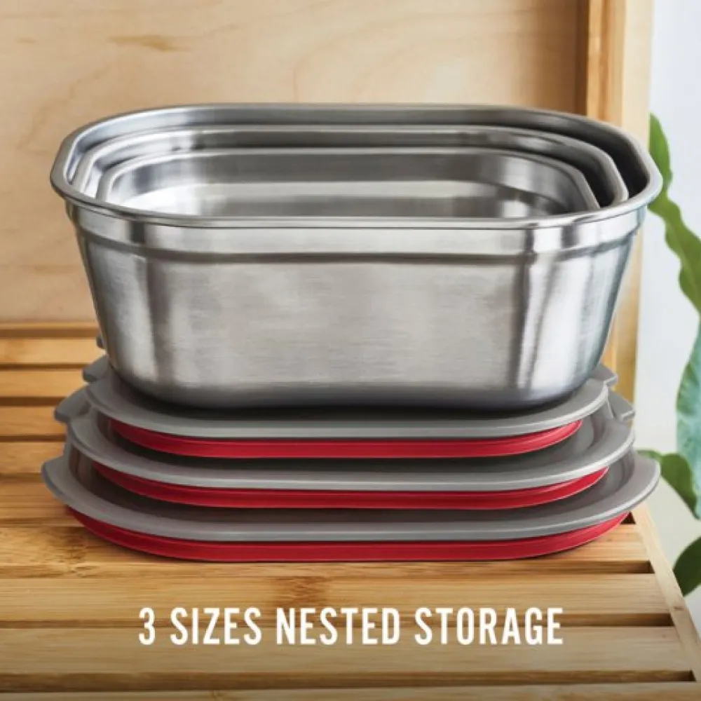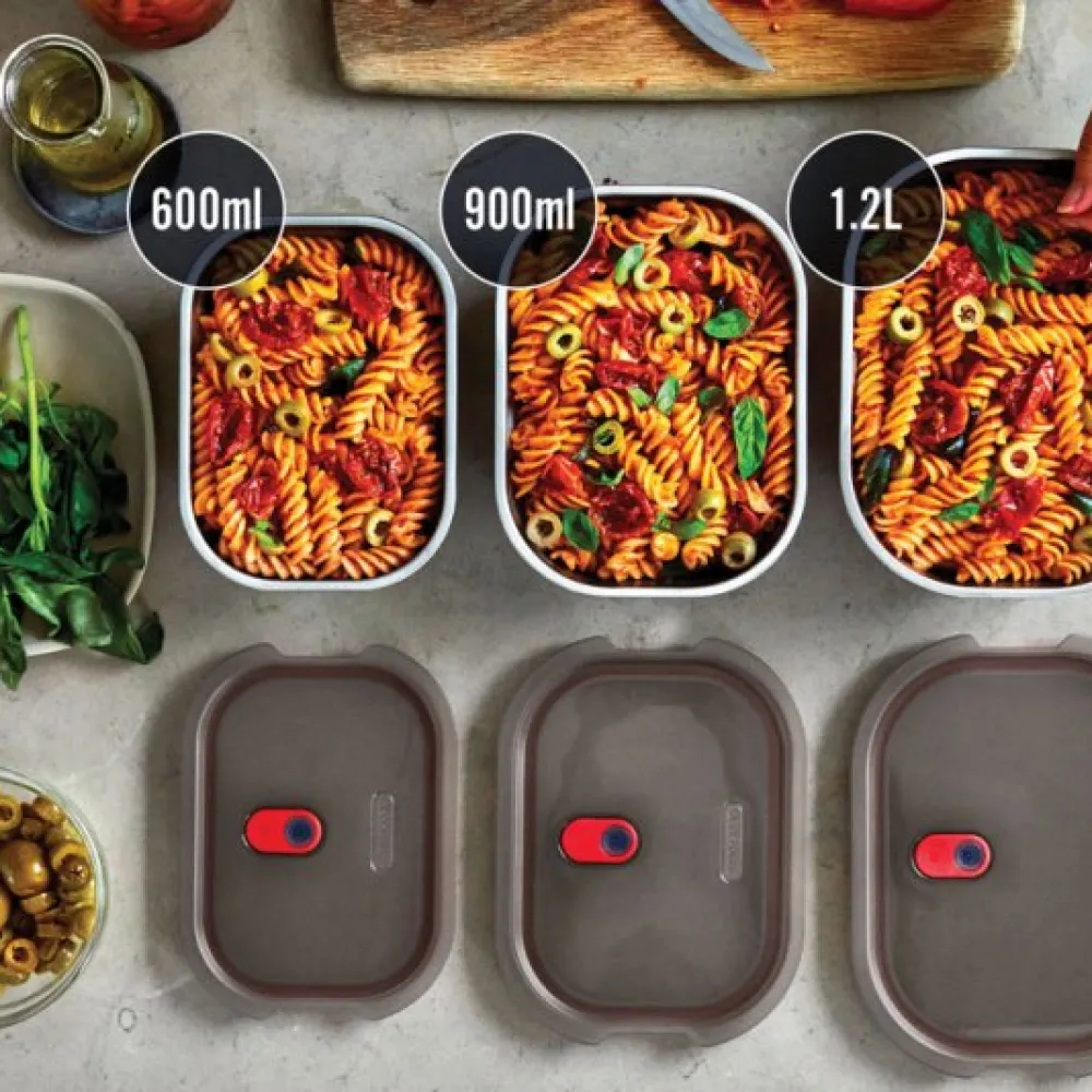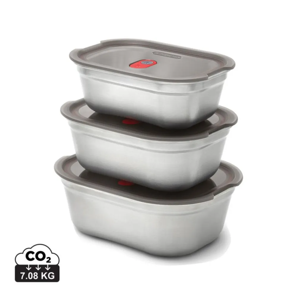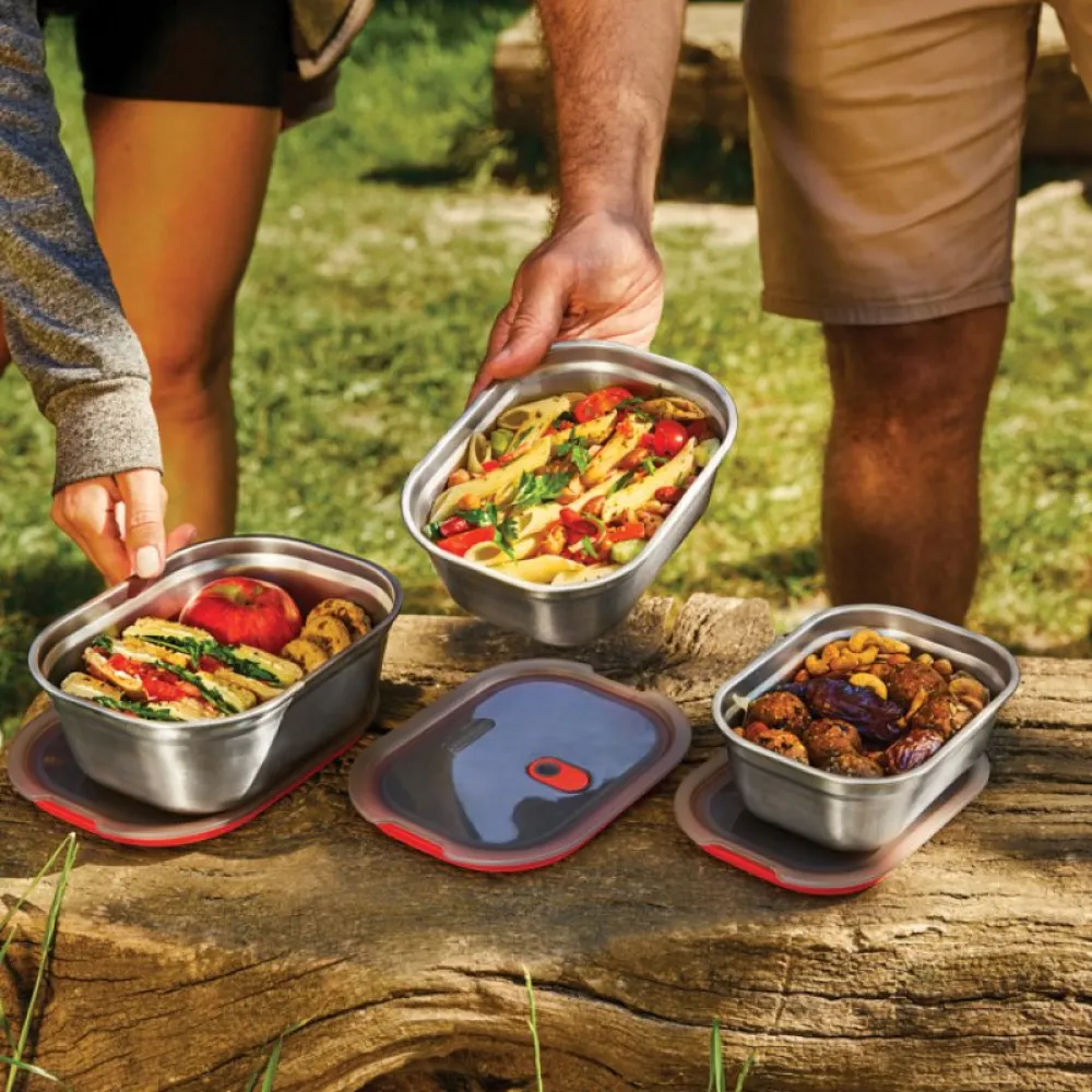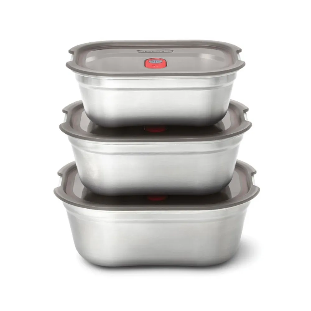 This set of three microwavable stainless steel meal prep boxes is designed for everyday use—lightweight, durable, and airtight. Whether for breakfast, lunch, or snacks, they’re ideal for food storage, on-the-go lunches, or oven-to-table meals. Each container features an innovative microwave-safe steel construction, with a vacuum-sealed, leak-proof lid that keeps food fresher for longer.