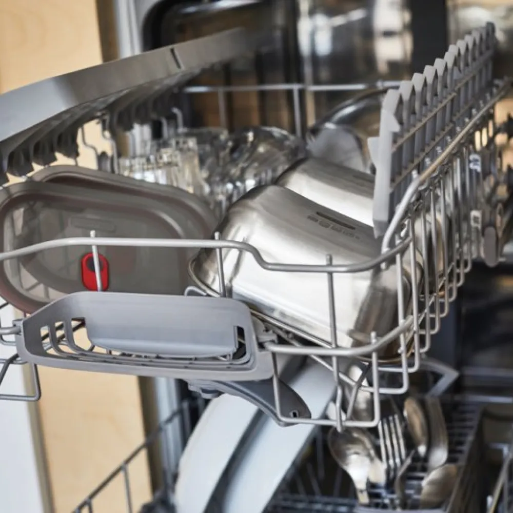 The semi-transparent lid lets you see what’s inside at a glance, while the high-quality stainless steel base is dishwasher-, freezer-, and oven-safe (lid not oven-safe).