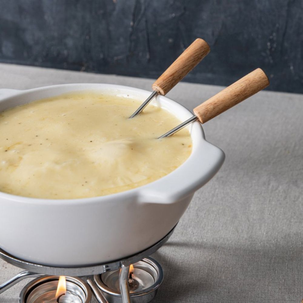 The ceramic fondue pot retains heat well, keeping your cheese fondue deliciously smooth and warm with the help of three tealights. Ideal for two to four people.