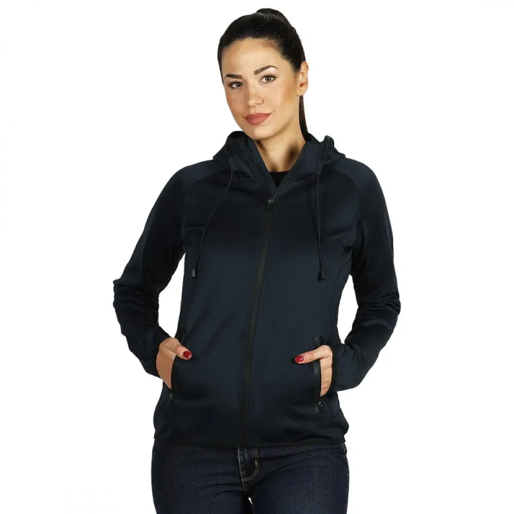 Ženska dukserica, 280 g/m2, blago strukirana, raglan rukavi, elastični učkuri sa steznim regulatorima u kapuljači, dva prednja džepa sa rajsferšlusom, elastični paspuli na rukavima i dnu