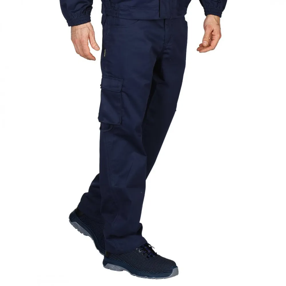 Pantalone, 240gr/m2, keper, dva prednja džepa, mali džep, dva džepa pozadi i dva sa strane, dve gajke za čekić, etiketa za lične podatke unutra, trostruki štepovi i ringlice, kao ojačanje