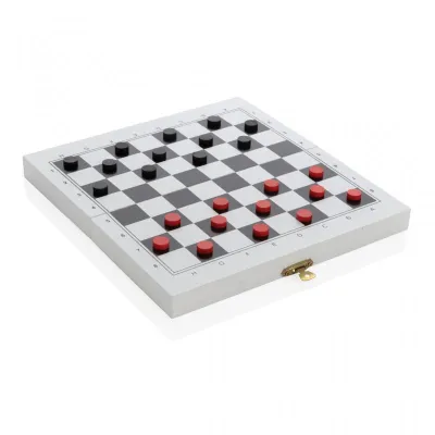 The box contains 2 dice, 30 backgammon pieces and a complete chess set.