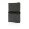 The front of the notebook features a horizontal elastic strap which holds your pen and phone.