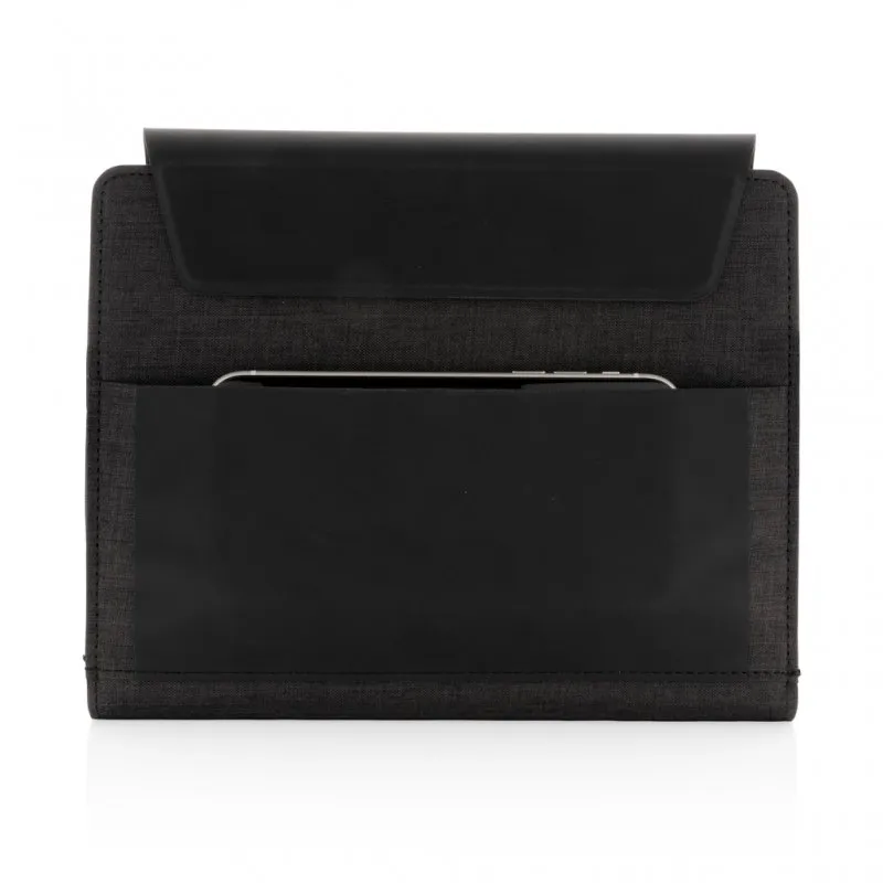This sleek portfolio features a built-in wireless charging phone stand, elastic pen loop and additional mesh pockets.