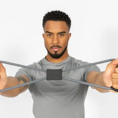This figure 8 shape exercise band is a great fitness tool. Strengthen your muscles with this compact and convenient exercise band! Easy to carry and toss into any bag, you can take it anywhere to stay in shape. Including a manual with exercises so you can start exercising! Comes in a convenient pouch for easy carrying.