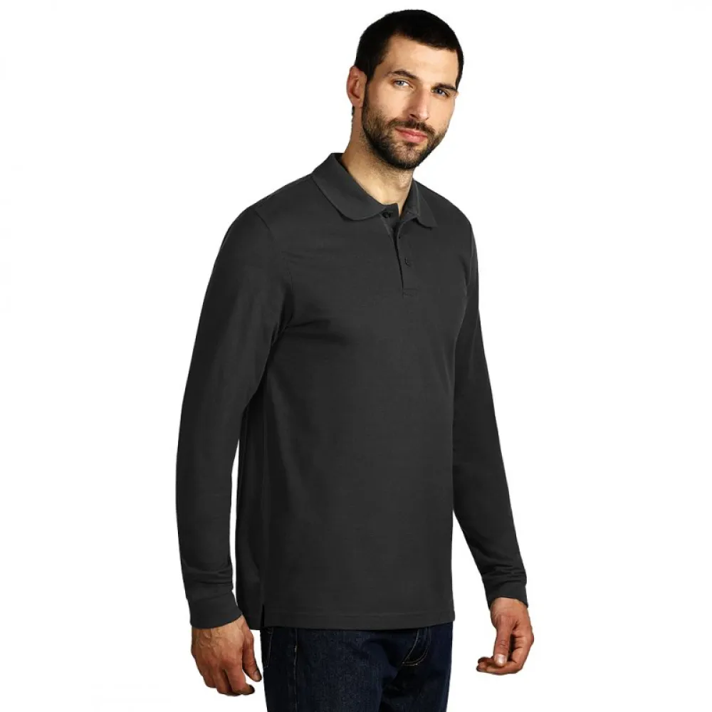Polo majica dugih rukava, 200 g/m2, šivena sa strane, elastične ranfle na rukavima, dupli štep na dnu, tri dugmeta u boji majice, rezervno dugme, dodatni štep duž ramena, okovratnik ojačan trakom, šlicevi sa strane.