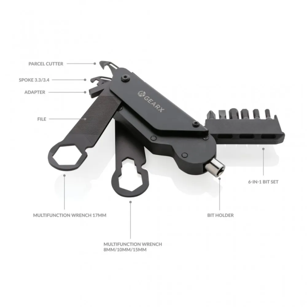 PH2) , spoke 3.4/3.3, box cutter, adaptor, multi function 18mm wrench with lock, second multifunction wrench 15/10/8 mm with lock, file.