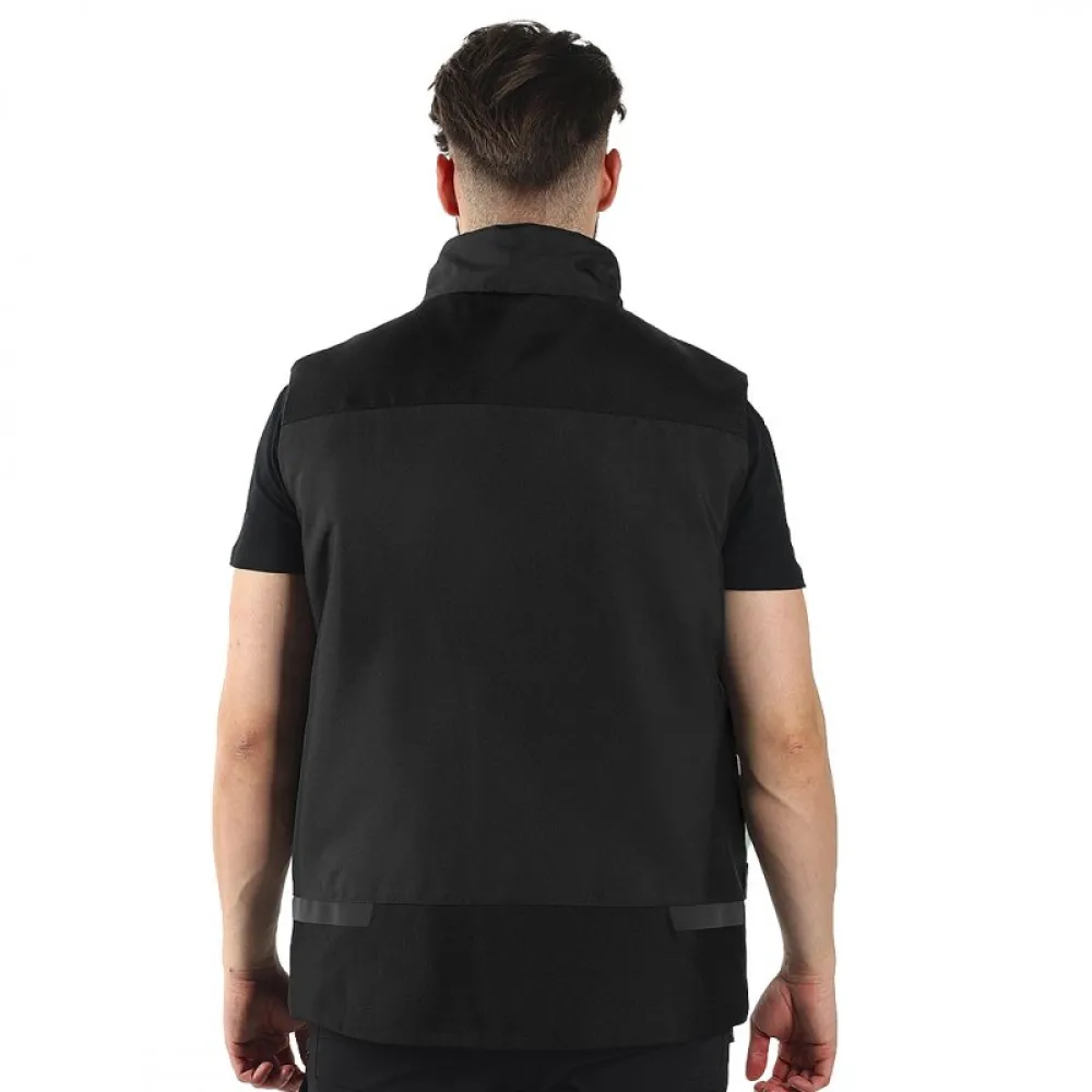Radni prsluk sa visokom kragnom, tri džepa na grudima, dva prednja džepa, unutrašnji džep za tablet, reflektivni detalji