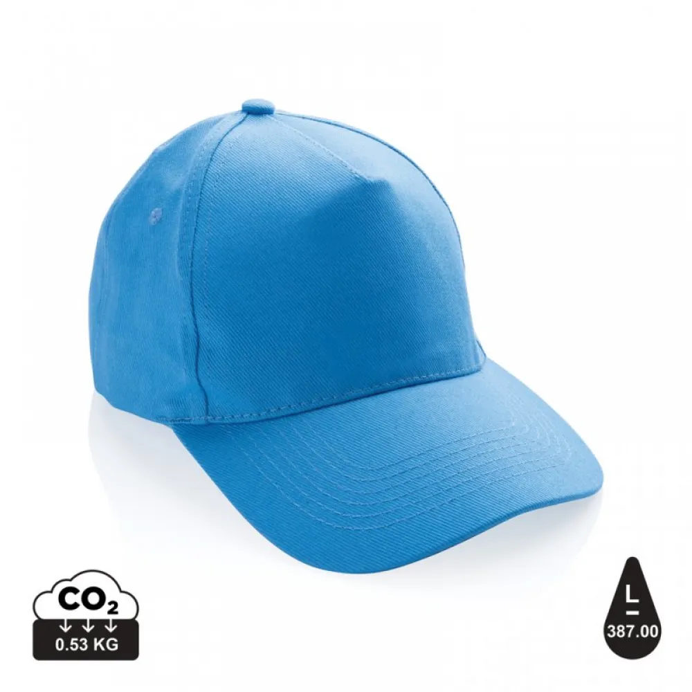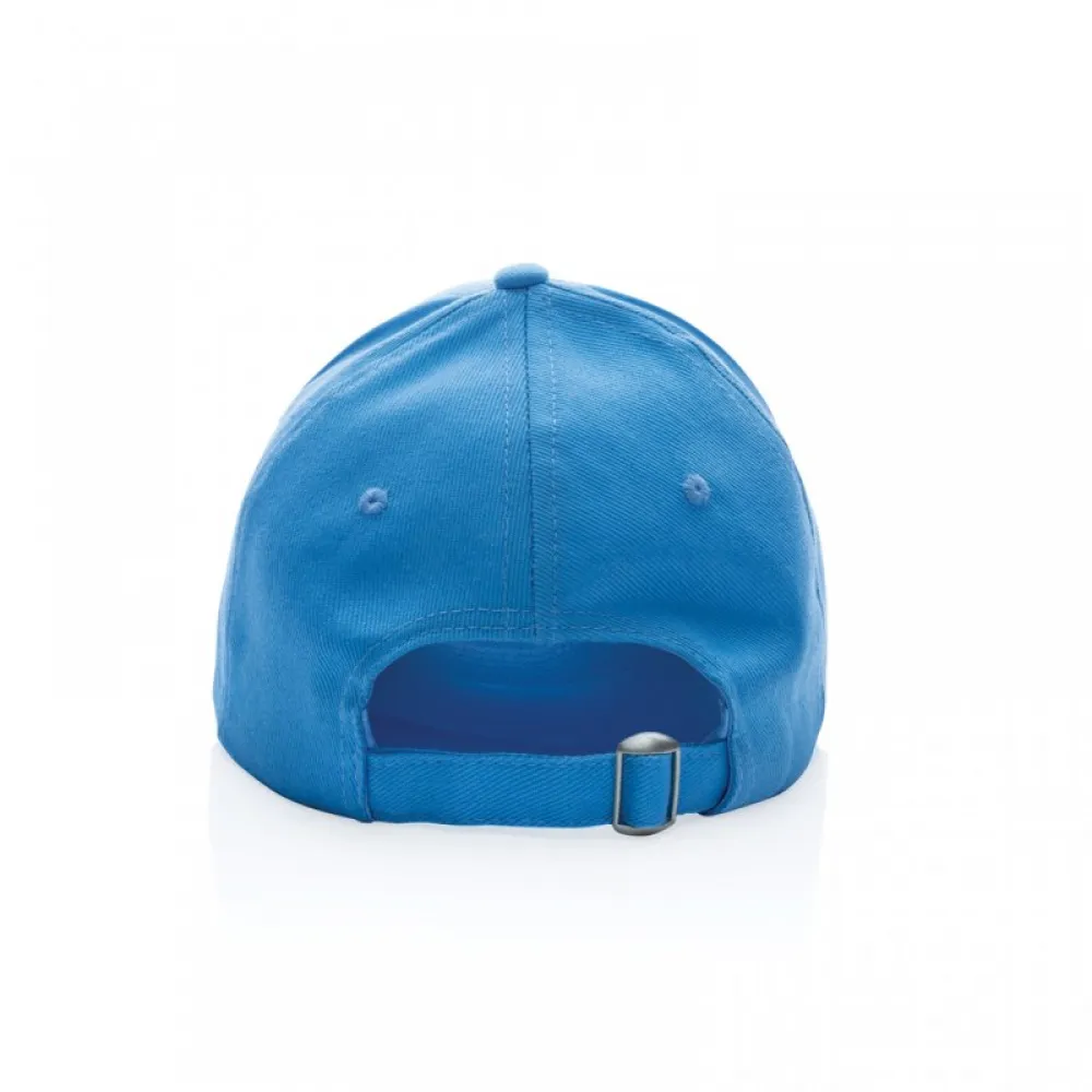 This 5 panel cap has a curved visor, embroidered eyelets for ventilation and metal buckle. Cotton twill made of 100% recycled materials and AWARE™ tracer.