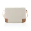 The cooler bag will easily fit 6 cans and features an open front pocket and handle for easy carrying.