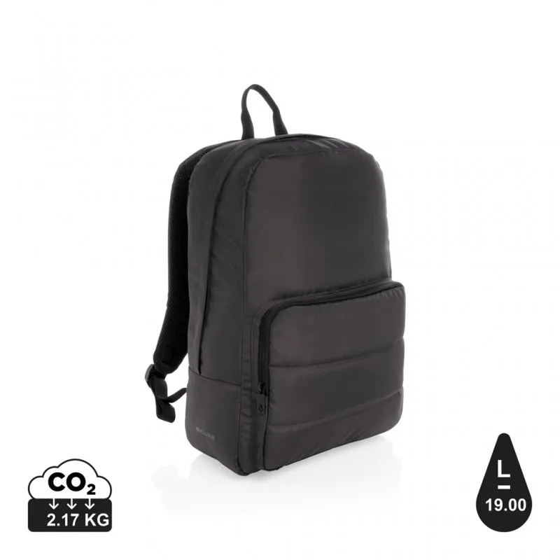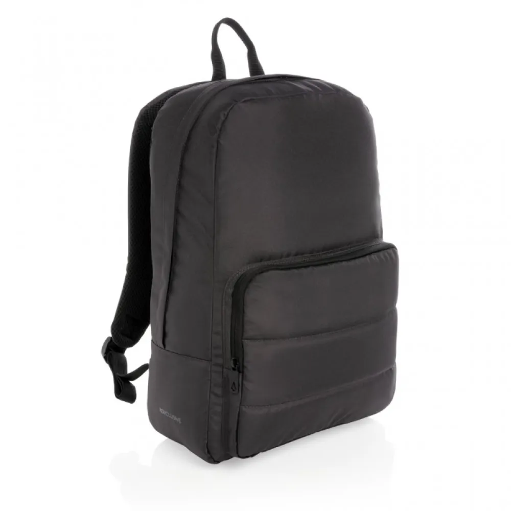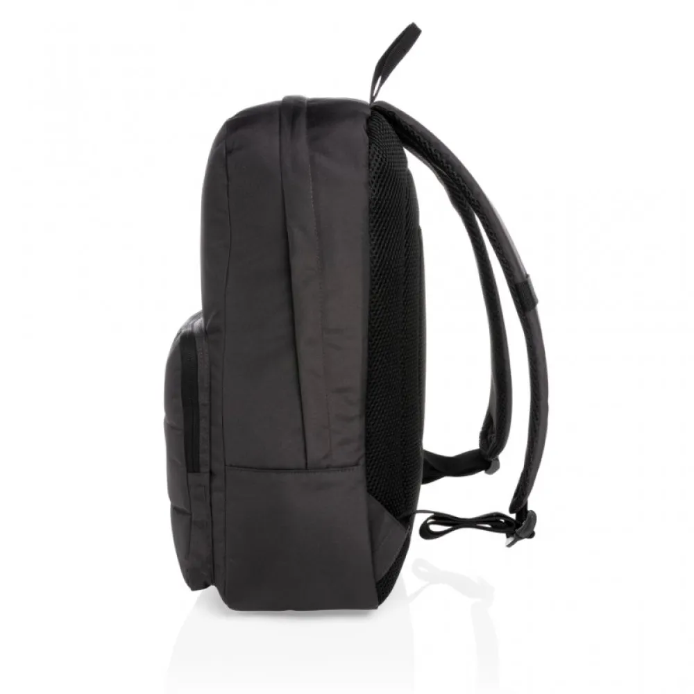The streamlined AWARE™ 15.6" laptop backpack includes a laptop sleeve in the main compartment and an inside sleeve pocket with 2 pen loops. A separate front zipper pocket can hold your small daily essentials. Interior and exterior 100% recycled polyester with AWARE™ tracer .