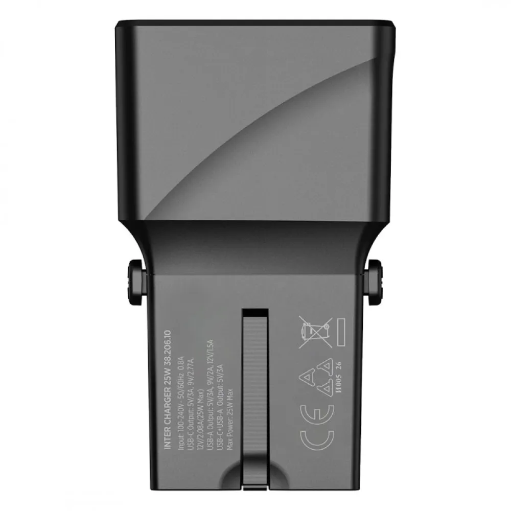 INTER CHARGER 25W, univerzalni putni zidni punjač, 25w, crni