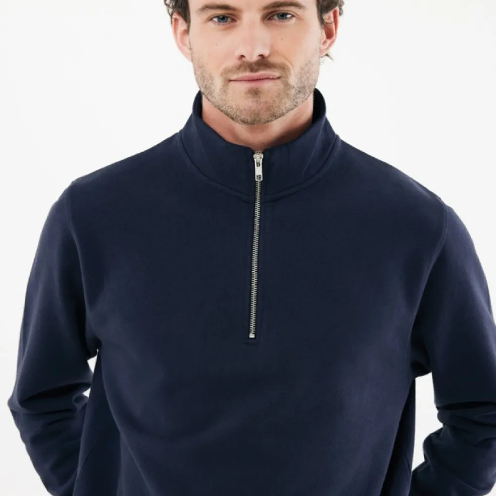 Unisex modern fit quarter zip sweater made from 100% cotton, of which 30% is recycled and 70% organic, in 300 G/M².
