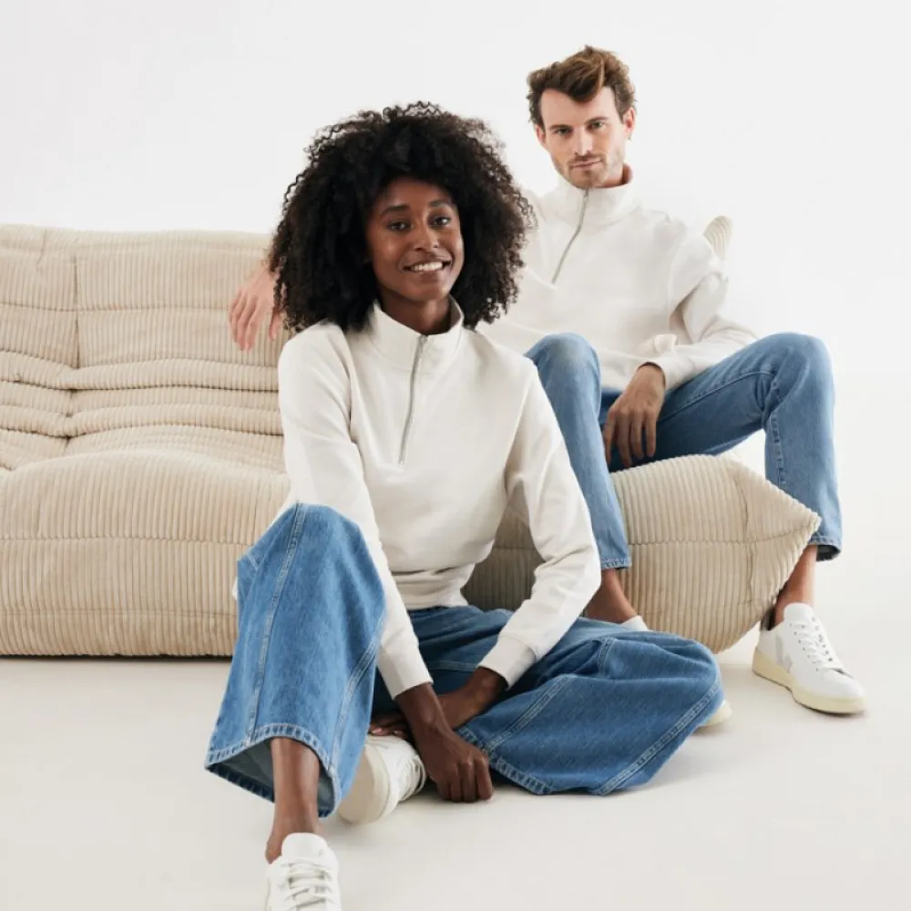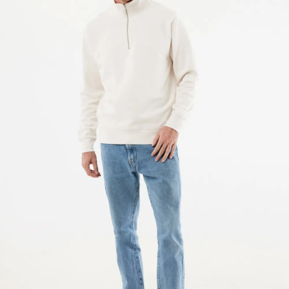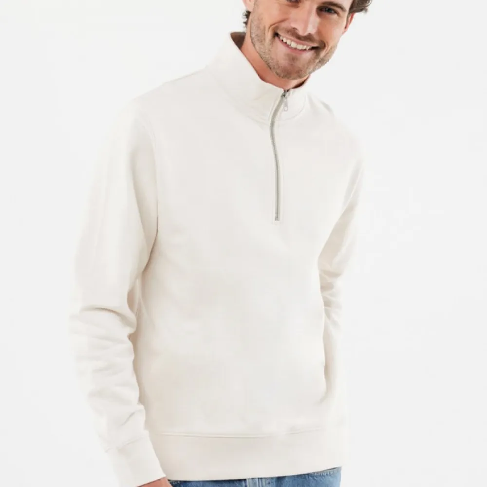 Unisex modern fit quarter zip sweater made from 100% cotton, of which 30% is recycled and 70% organic, in 300 G/M².