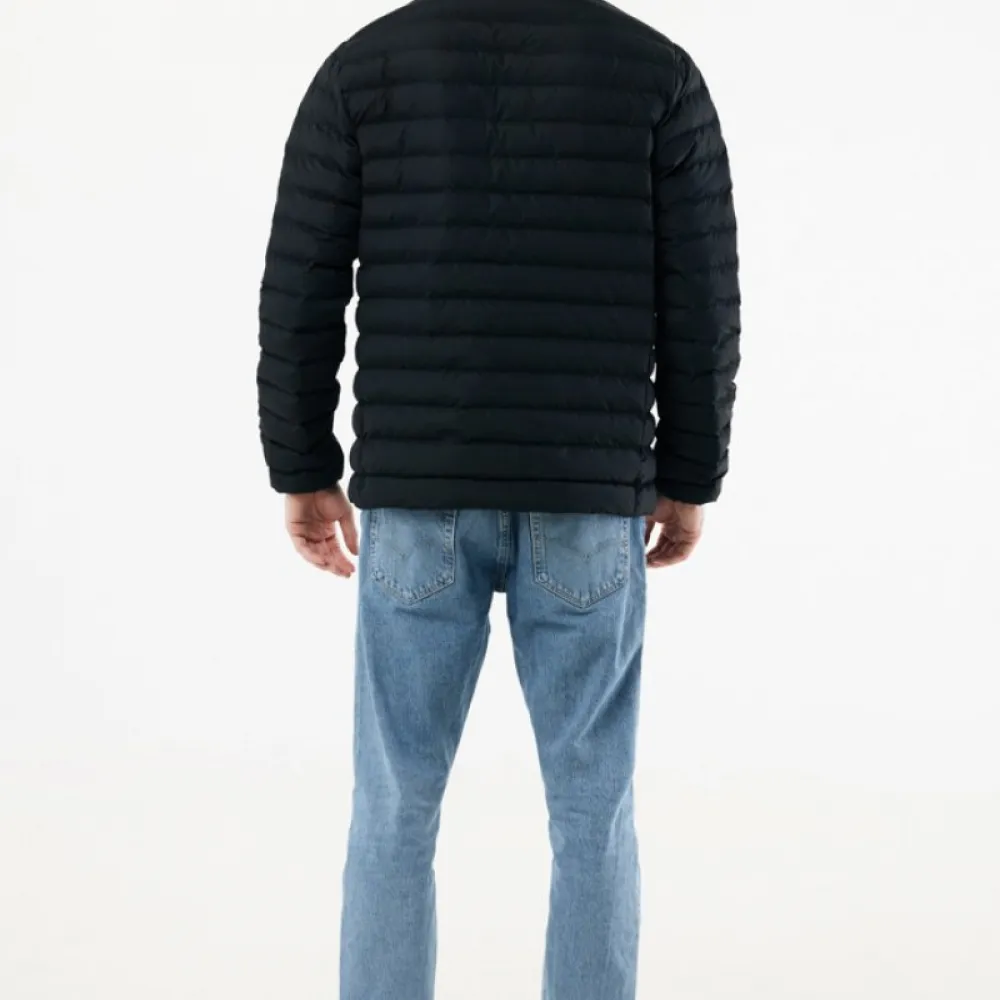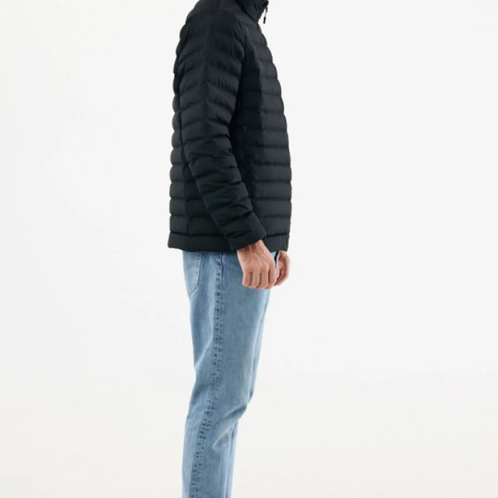 Men’s medium fit padded jacket made from 100% post-consumer recycled polyester.