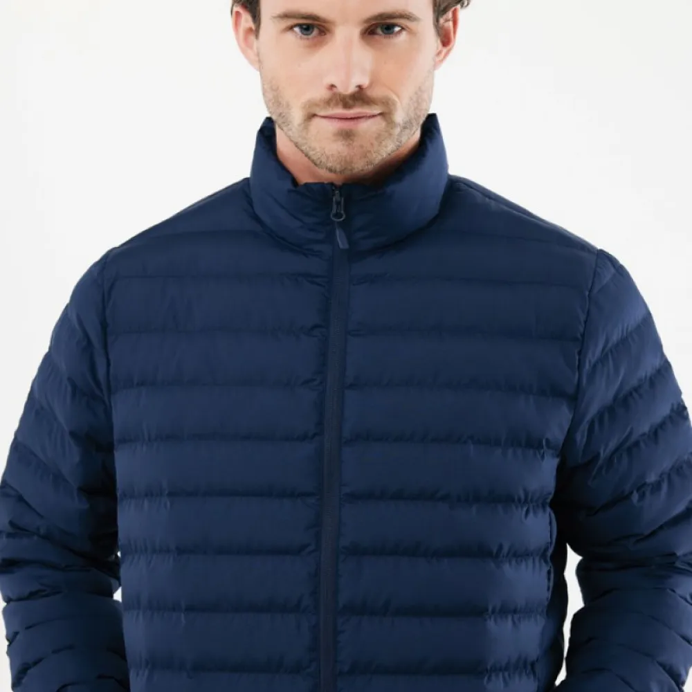 Men’s medium fit padded jacket made from 100% post-consumer recycled polyester.