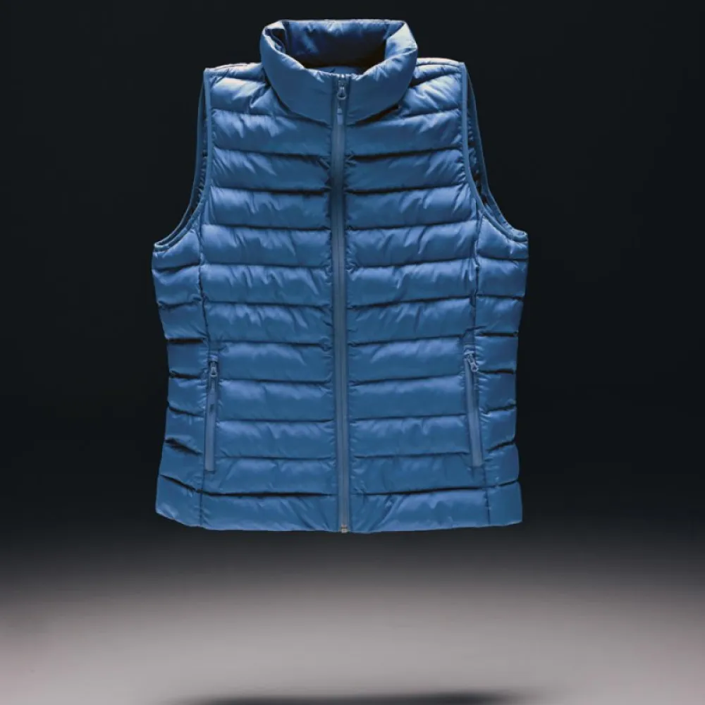 The bodywarmer is fully quilted with 100% recycled polyester pearl filling. It has a reversed zipper at the front and practical zip pockets in the side panel seams. All zippers have extra zip pullers in matching colour for a refined look.