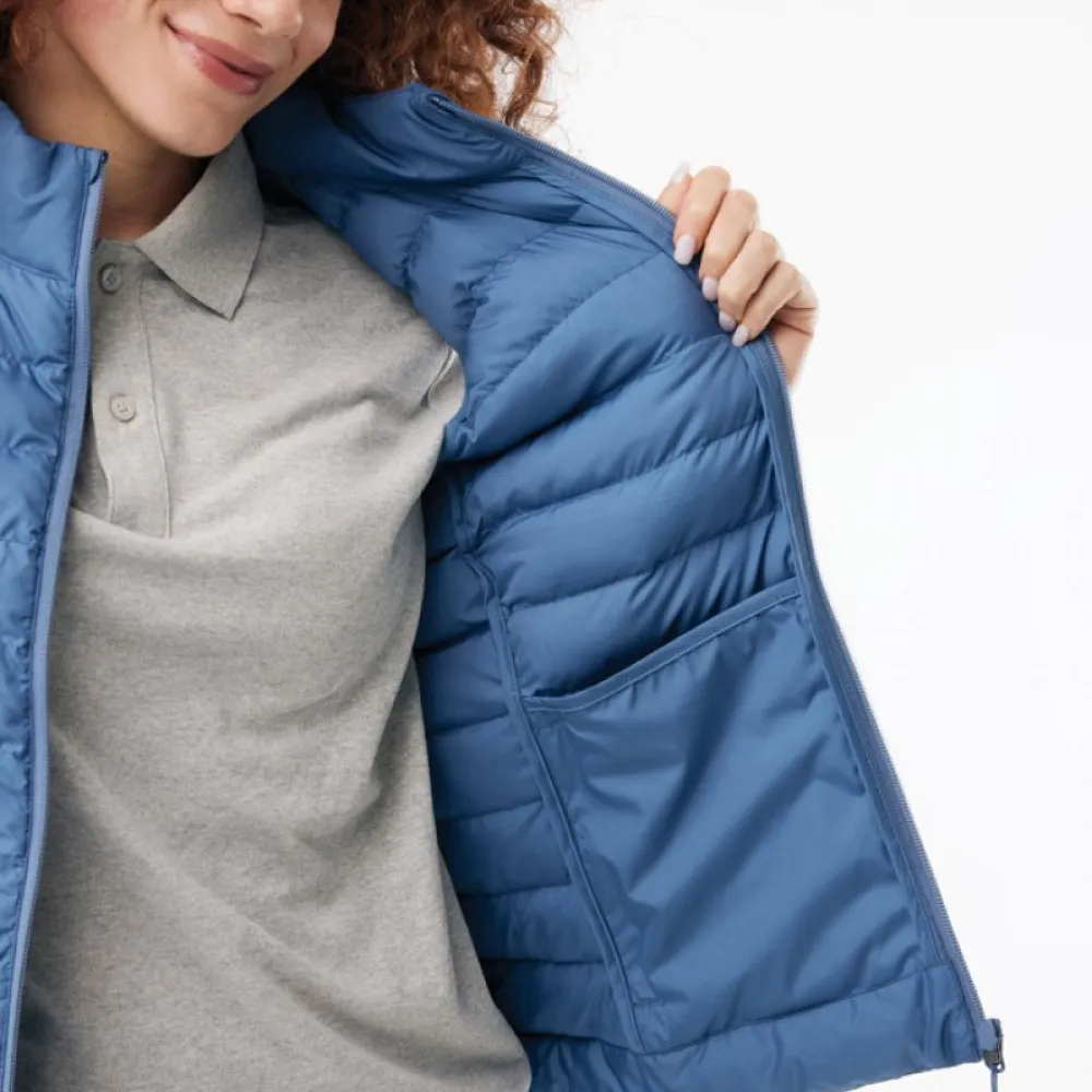 The bodywarmer is fully quilted with 100% recycled polyester pearl filling. It has a reversed zipper at the front and practical zip pockets in the side panel seams. All zippers have extra zip pullers in matching colour for a refined look.