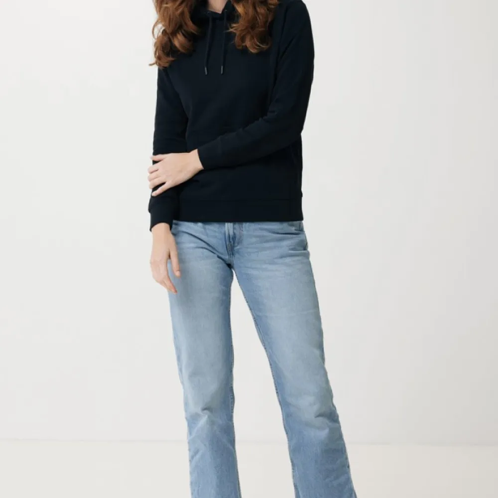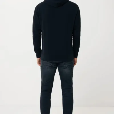 This unisex modern fit hoodie has a double-layered hood, long sleeves and 1x1 rib at cuffs and bottom hem.