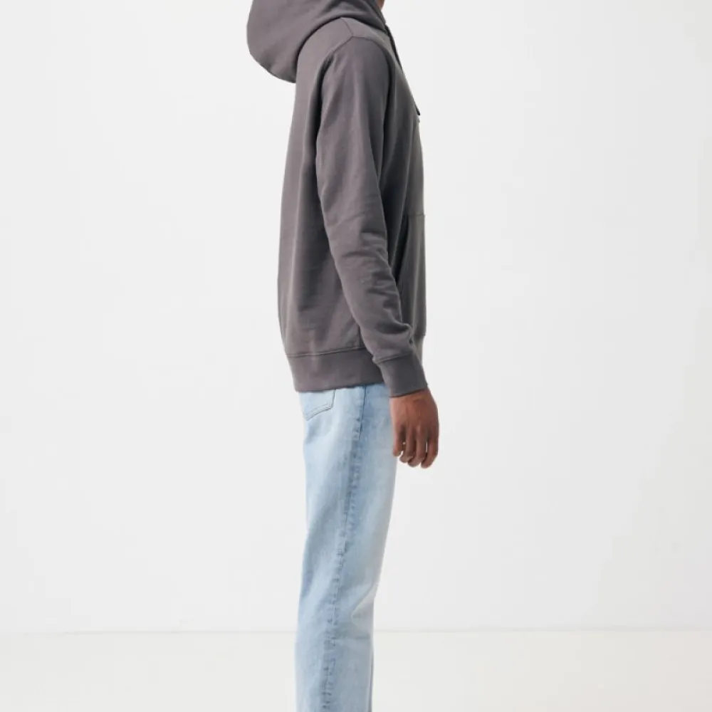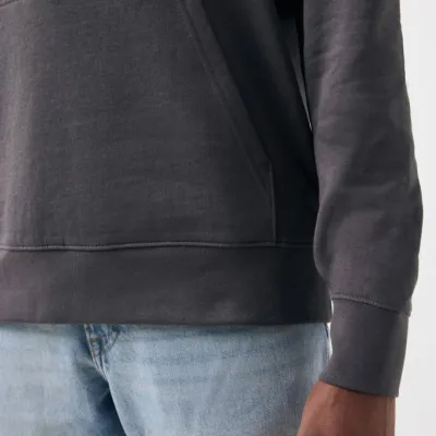 This unisex modern fit hoodie has a double-layered hood, long sleeves and 1x1 rib at cuffs and bottom hem.