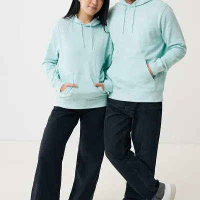 This unisex modern fit hoodie has a double-layered hood, long sleeves and 1x1 rib at cuffs and bottom hem.