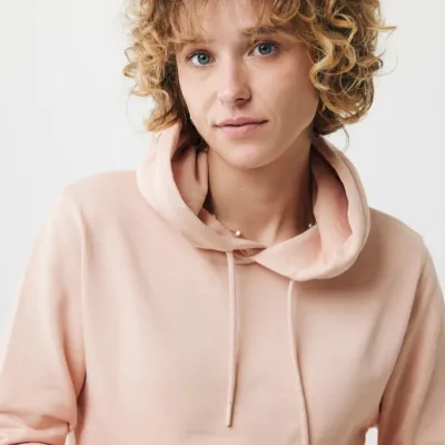 This unisex modern fit hoodie has a double-layered hood, long sleeves and 1x1 rib at cuffs and bottom hem.
