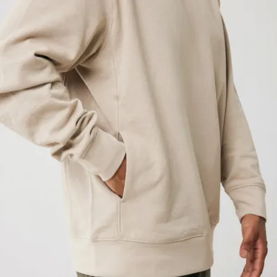 The sweater has pockets in the sideseams, a double-layered hood and 1x1 rib at cuffs and bottom hem.