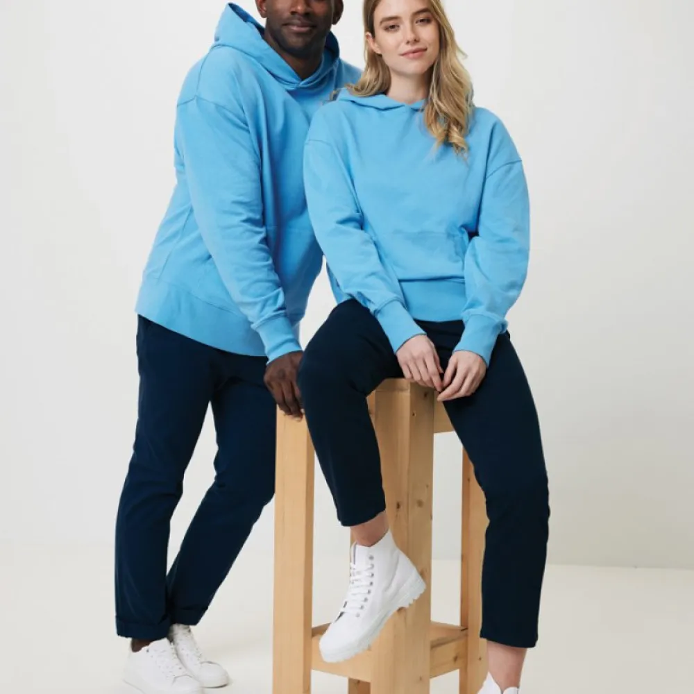 The composition is 100% cotton, of which 50% is recycled and 50% organic, in 340 G/M². No mix with plastics (such as polyester), so after life is recyclable into new cotton products.