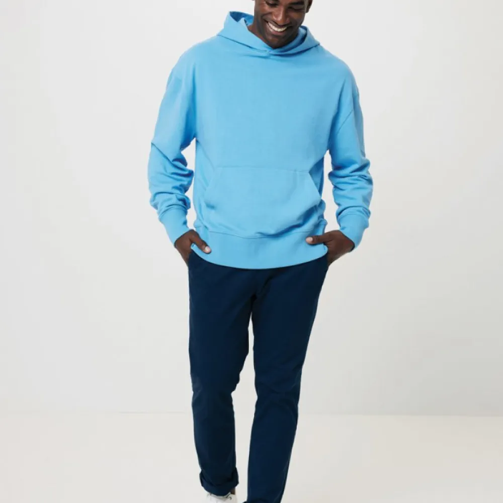 This unisex relaxed fit hoodie has dropped shoulders and wider long sleeve, a double-layered hood and 2x2 rib bottom hem and cuffs.