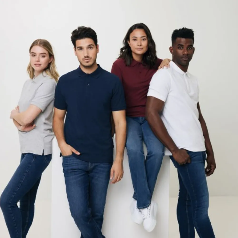 Unisex medium fit pique polo made from 100% cotton, of which 50% is recycled and 50% organic, in 220 G/M².