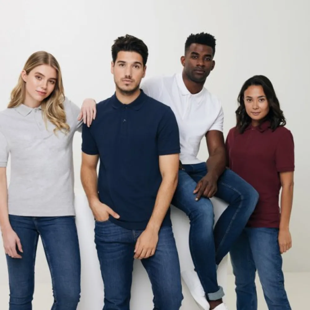 Unisex medium fit pique polo made from 100% cotton, of which 50% is recycled and 50% organic, in 220 G/M².