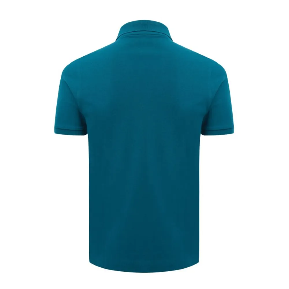 The polo has a front placket with two buttons in matching colour and 1x1 flat rib.
