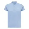 The polo has a front placket without topstitch and with three buttons in matching colour. 1x1 flat rib at collar and cuffs.