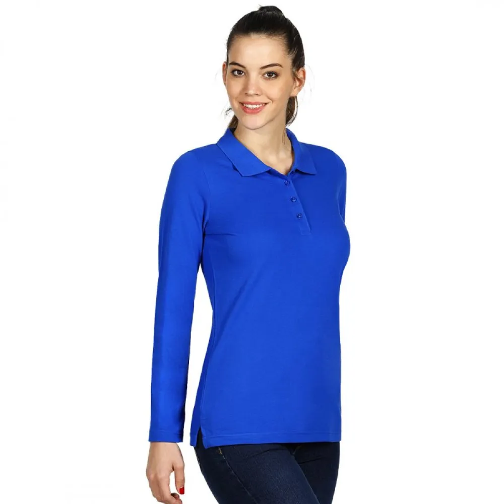 LINDA, ženska pamučna polo majica dugih rukava, 200 g/m2, rojal plava