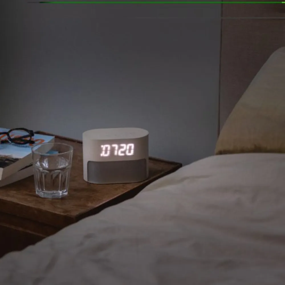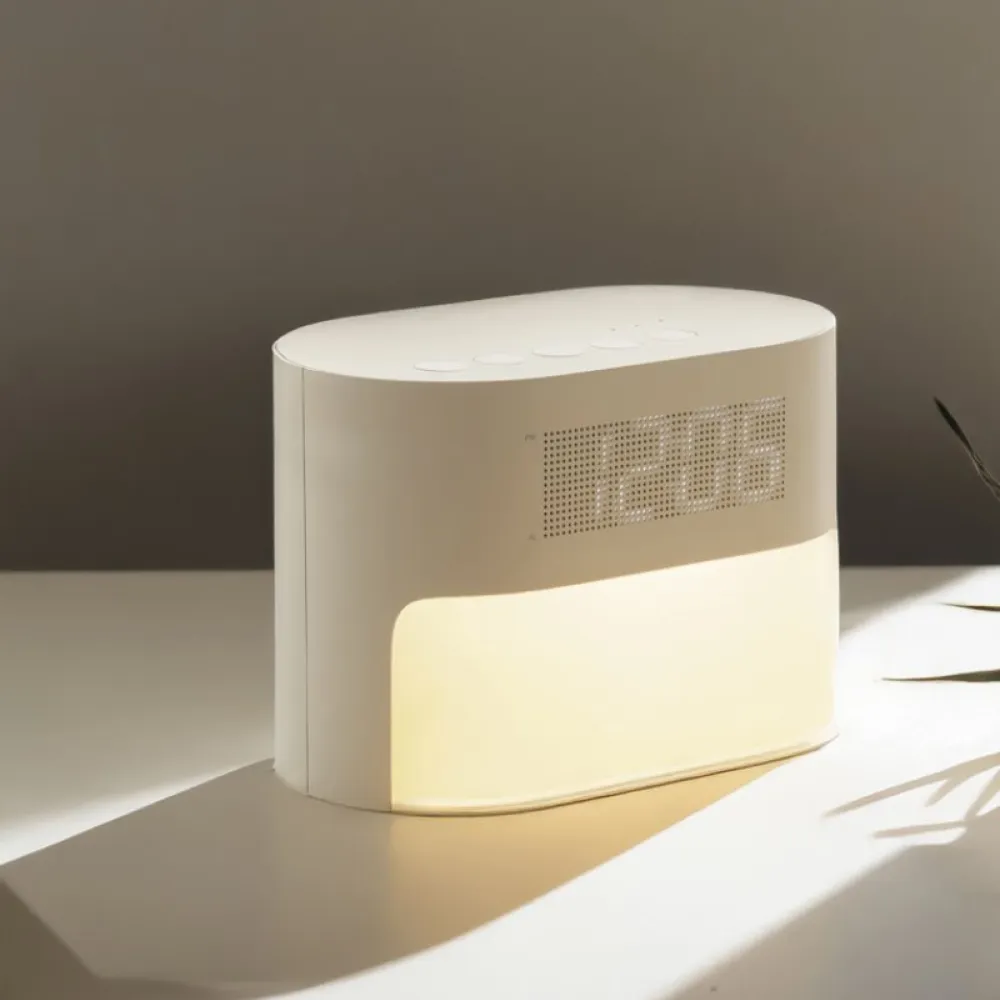 Wake Naturally with LumaRise Sunrise Alarm Clock. LumaRise is designed to transform your mornings with its soothing sunrise simulation, which gradually brightens to help you wake up naturally and calmly. Its integrated white noise feature offers six calming soundscapes to create the perfect environment for restful sleep. LumaRise provides an energising wake-up experience, leaving you refreshed and ready to start your day.