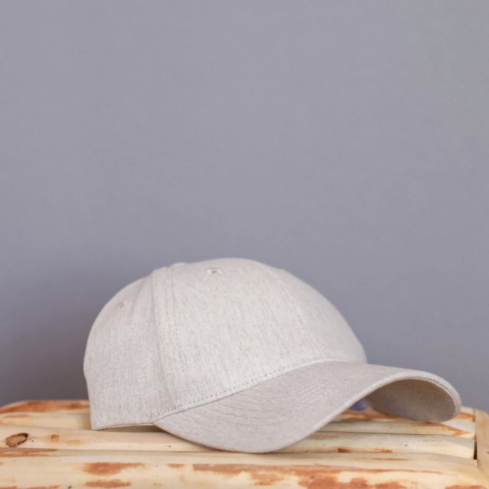 Milo AWARE™ heather 6 panel cap. 70% recycled cotton & 30% recycled polyester. Cap comes with metal buckle closure.