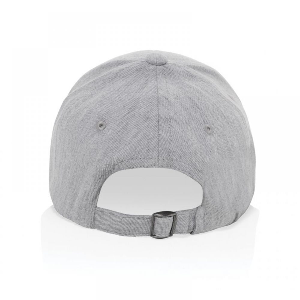 Milo AWARE™ heather 6 panel cap. 70% recycled cotton & 30% recycled polyester. Cap comes with metal buckle closure.