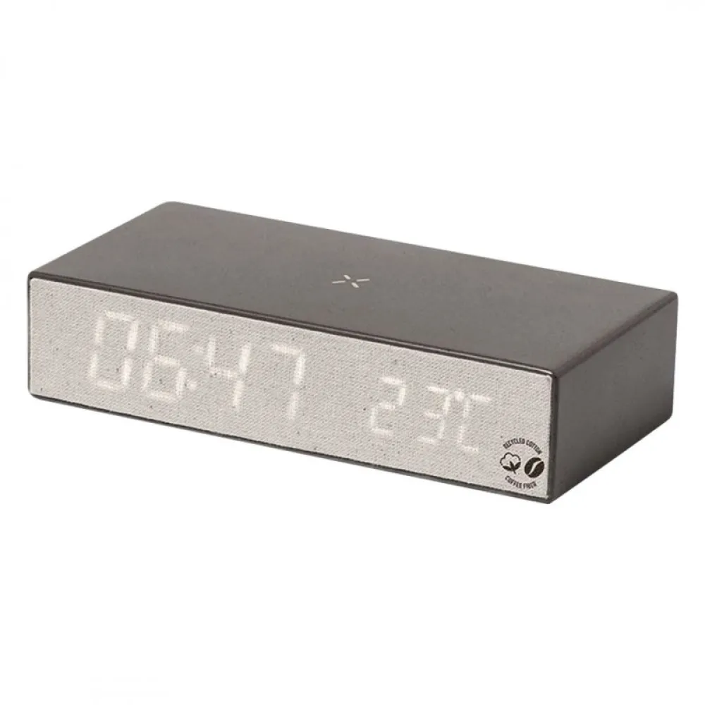 MITTO, digitalni stoni lcd sat sa bežičnim punjenjem, 15w, braon