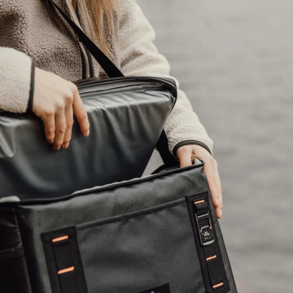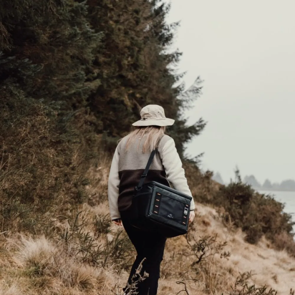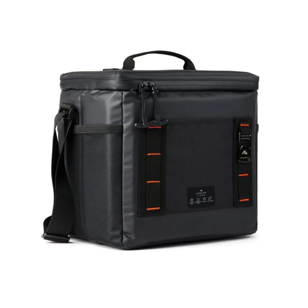 The bag features a 2-in-1 carry system with a comfortable carry handle and adjustable, removable shoulder strap for effortless transport. Attachment straps and carabiner-ready loops make it easy to secure bottles, tools or other gear, while the built-in bottle opener adds a handy touch for outdoor adventures.