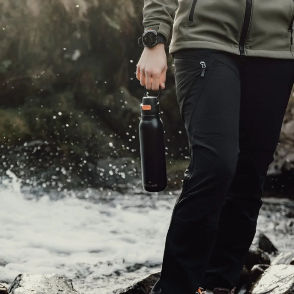 Made from 68% high-quality RCS certified recycled stainless steel, it features a durable powder-coated body and a carry handle that also functions as a lock, keeping your bottle secure and completely leakproof. Lightweight and rugged, this 750ml bottle is perfect for hikes, sports, or everyday use, combining practicality with durability and outdoor-ready performance.