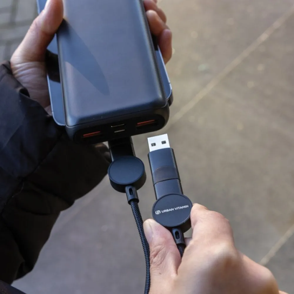 The cable also has a USB A output input option so it can charge any device from any output source.